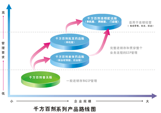 千方百劑醫藥管理系列產品是針對醫藥企業經營管理而開發的專業醫藥軟件,集進銷存、財務、GSP及經營分析于一體,充分滿足醫藥經營企業的各種需求。。該軟件從醫藥經營企業的各個環節對人流、物流、資金流、信息流進行統一系統的管理,實現業務信息的電腦全程記錄和把控,全面提升中小型藥店的經營管理水平。